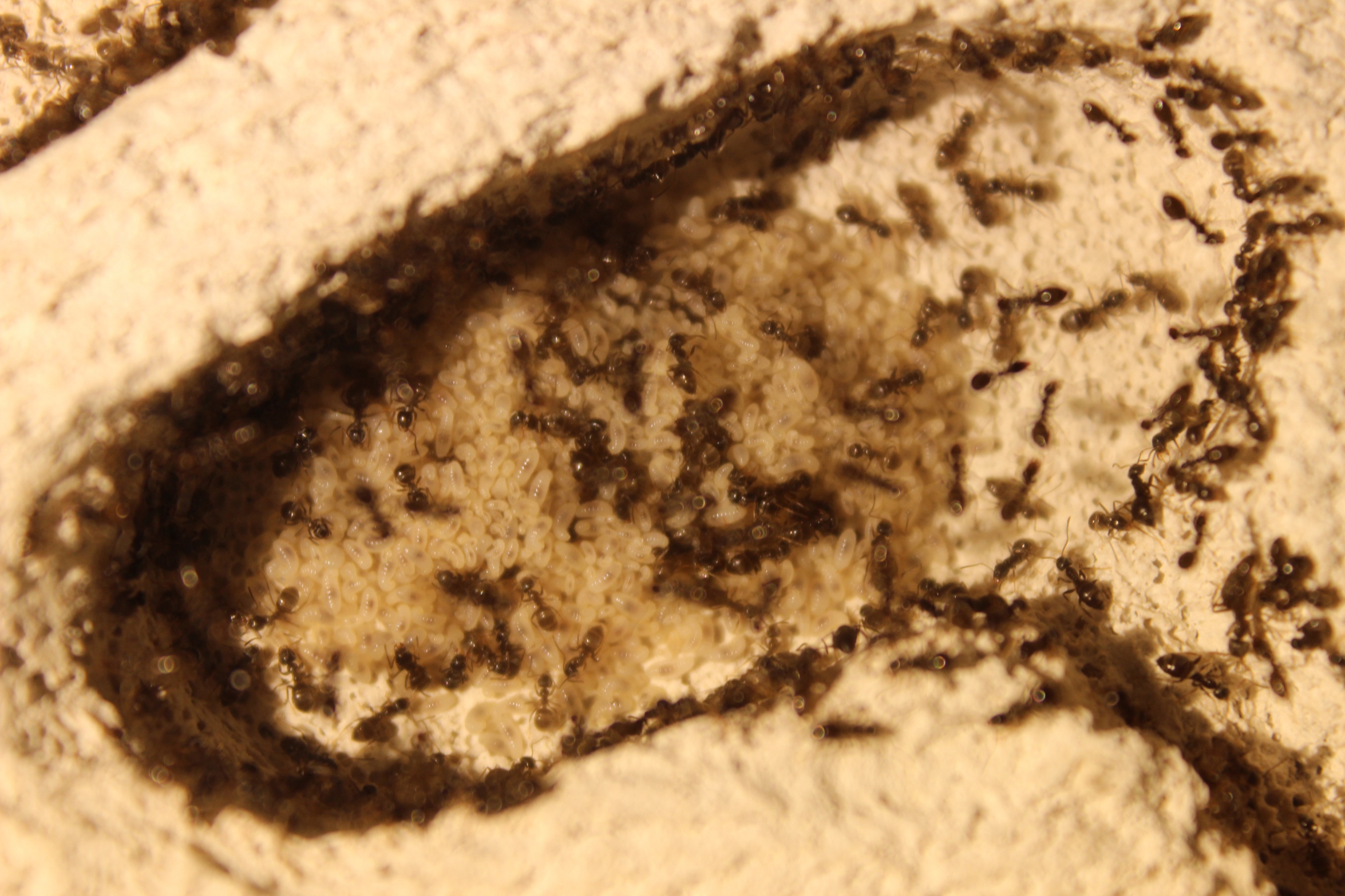 heute nur ein kurzes Update. Den Ameisen geht es wie immer prächtig. Sie sind gut genährt und und ziehen viel Brut auf. In ungefähr zwei Wochen wird ein Massenschlupf stattfinden wo ungefähr 300 neue Arebiterinnen dazu kommen werden.