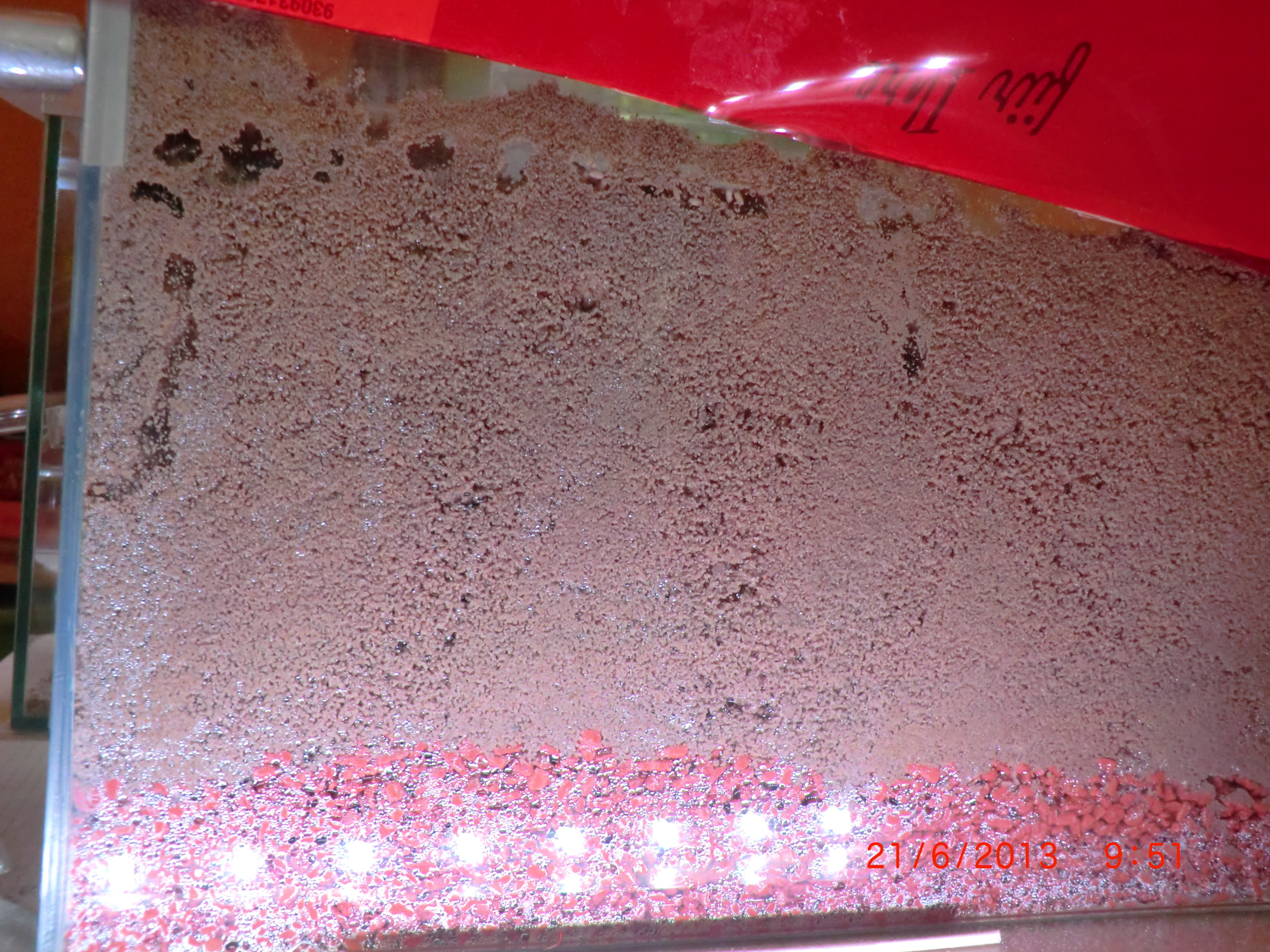 Den Winter 2013/2014 überstanden sie sehr gut und keine einzige Ameise starb. Sie bekamen auch gleich eine zweite Arena (30x20 cm) und einen ca. 3 Meter langen Schlauch als Verbindung zur ersten Arena. Das Ytongnest wurde über einen Y-Verbinder mit an die Farm angeschlossen. Am 3.3.14 sind sie dann auch entlich in dieses gezogen. Seitdem habe ich einen klasse Einblick in das Nestgeschehen.